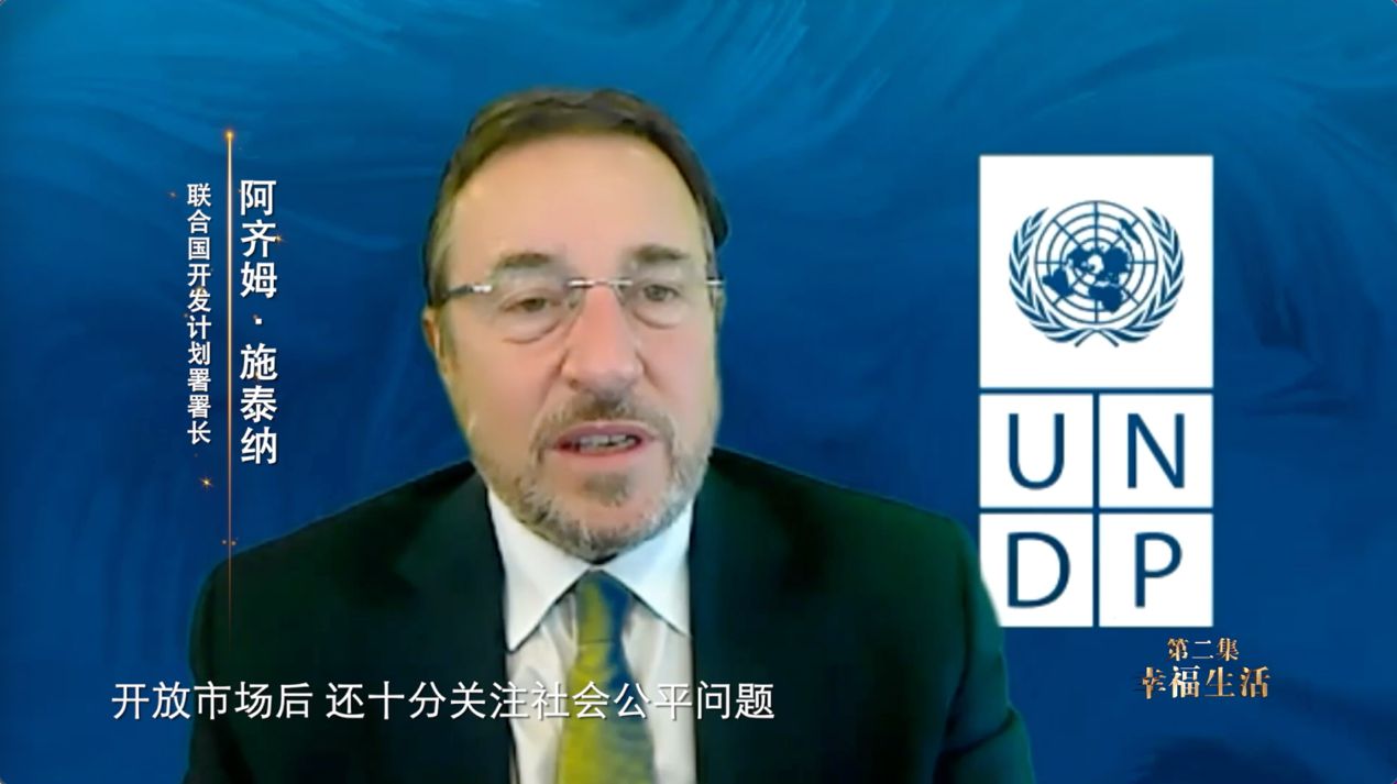 联合国开发计划署署长 阿齐姆·施泰纳:中国在很早前就开始改革开放,进入工业化。开放市场后,还十分关注社会公平问题。因为经济的快速发展总是会带来一些挑战,中国的发展不平等也会增加。为此,中国特意实施了很多大型的项目,在大规模教育、基础建设、改善卫生等方面都富有成效。