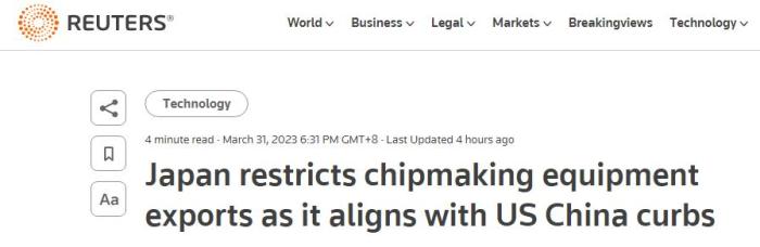 但路透社认为,日方的措施是为了配合美国实施的针对中国的芯片出口管制措施。英国《金融时报》还称,日本此举是在履行其与美国和荷兰达成的、针对中国半导体的三方协议。